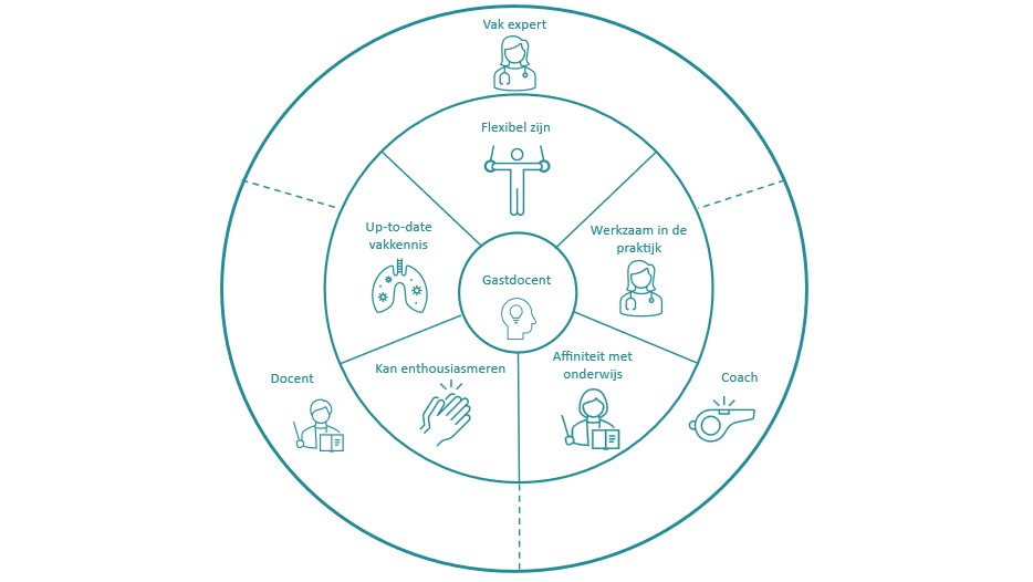 De gastdocent vervult de rol van coach binnen het onderwijsconcept, met oog voor methodieken zoals de flipped classroom en team-based learning. Deze aanpak stimuleert actief leren en samenwerking, waarbij de gastdocent begeleidt en ondersteunt om het leerproces en -rendement te optimaliseren. Door een betrouwbare en toegankelijke houding weet de gastdocent een veilige leeromgeving te creëren waarin studenten zich gestimuleerd voelen om vragen te stellen en zich verder te ontwikkelen.